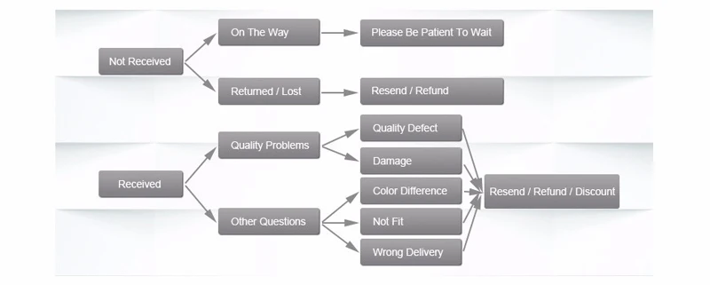 Problema de qualidadeVamos verificar cada pedaço de produtos cuidadosamente antes do envio, no entanto, alguns deles podem ficar danificados durante o trânsito. Se você encontrar qualquer problema de qualidade, por favor tire uma foto e entre em contato conosco com 15 dias após o recebimento, vamos reenviar-lhe um novo produto ou reembolsar o seu pagamento.
