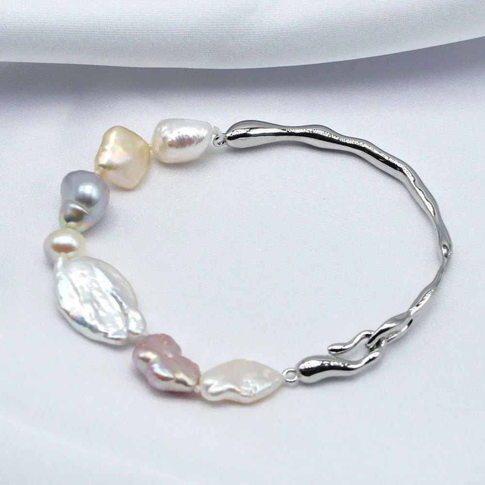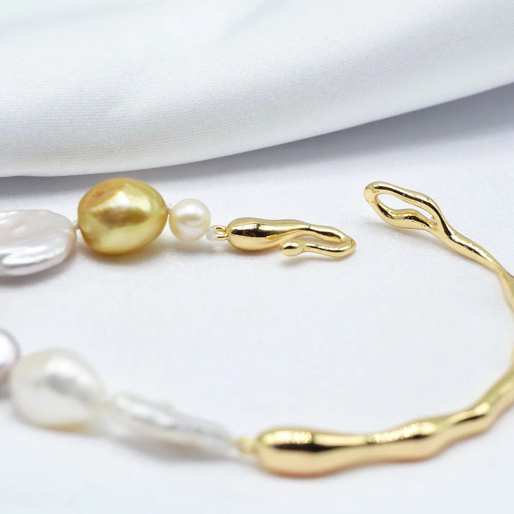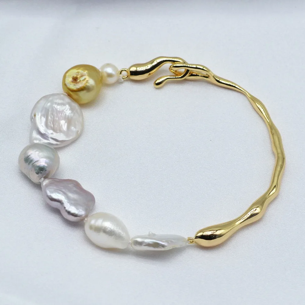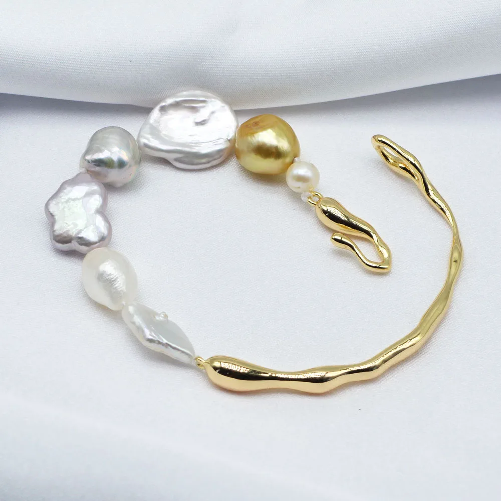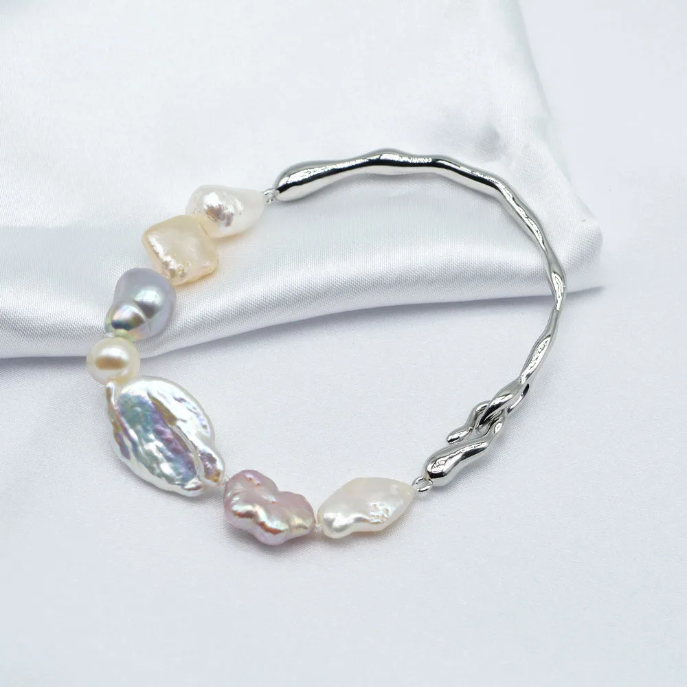 Esta é uma pérola barroca 100% natural, e usamos aleatoriamente pérolas naturais de diferentes cores e formas, então a aparência de cada pulseira é diferente.